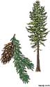 2. | douglas fir - tall evergreen timber tree of western North America having resinous wood and short needles genus Pseudotsuga, Pseudotsuga - douglas fir; closely related to genera Larix and Cathaya douglas fir - strong durable timber of a douglas fir douglas hemlock, douglas pine, douglas spruce, green douglas fir, Oregon fir, Oregon pine, Pseudotsuga menziesii - lofty douglas fir of northwestern North America having short needles and egg-shaped cones big-cone douglas fir, big-cone spruce, Pseudotsuga macrocarpa - douglas fir of California having cones 4-8 inches long conifer, coniferous tree - any gymnospermous tree or shrub bearing cones |