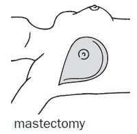 | Noun | 1. | mastectomy - surgical removal of a breast to remove a malignant tumormodified radical mastectomy - removal of a breast and the pectoralis minor and some lymph nodes in the adjacent armpit radical mastectomy - removal of a breast and the underlying muscles (pectoralis major and pectoralis minor) and lymph nodes in the adjacent armpit simple mastectomy - removal of a breast leaving the underlying muscles and the lymph nodes intact |