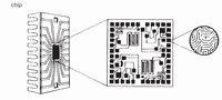 | 7. | chip - electronic equipment consisting of a small crystal of a silicon semiconductor fabricated to carry out a number of electronic functions in an integrated circuitbiochip - a microchip that uses tiny strands of DNA to latch onto and quickly recognize thousands of genes at a time; intended for use in a biological environment computer, computing device, computing machine, data processor, electronic computer, information processing system - a machine for performing calculations automatically DNA chip, gene chip - a microchip that holds DNA probes that form half of the DNA double helix and can recognize DNA from samples being tested integrated circuit, microcircuit - a microelectronic computer circuit incorporated into a chip or semiconductor; a whole system rather than a single component memory chip - a RAM microchip that can be plugged into a computer to provide additional memory microprocessor - integrated circuit semiconductor chip that performs the bulk of the processing and controls the parts of a system; "a microprocessor functions as the central processing unit of a microcomputer"; "a disk drive contains a microprocessor to handle the internal functions of the drive" semiconductor device, semiconductor unit, semiconductor - a conductor made with semiconducting material | |