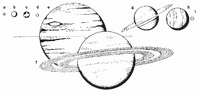 | Noun | 1. | solar system - the sun with the celestial bodies that revolve around it in its gravitational fieldsystem, scheme - a group of independent but interrelated elements comprising a unified whole; "a vast system of production and distribution and consumption keep the country going" heliosphere - the region inside the heliopause containing the sun and solar system earth, globe, world - the 3rd planet from the sun; the planet we live on; "the Earth moves around the sun"; "he sailed around the world" interplanetary medium - interplanetary space including forms of energy and gas and dust Jupiter - the largest planet and the 5th from the sun; has many satellites and is one of the brightest objects in the night sky Edgeworth-Kuiper belt, Kuiper belt - a disk-shaped region of minor planets outside the orbit of Neptune Mars, Red Planet - a small reddish planet that is the 4th from the sun and is periodically visible to the naked eye; minerals rich in iron cover its surface and are responsible for its characteristic color; "Mars has two satellites" Mercury - the smallest planet and the nearest to the sun minor planet, planetoid - any of numerous small celestial bodies that move around the sun Neptune - a giant planet with a ring of ice particles; the 8th planet from the sun is the most remote of the gas giants; "the existence of Neptune was predicted from perturbations in the orbit of Uranus and it was then identified in 1846" outer planet - (astronomy) a major planet whose orbit is outside the asteroid belt (Jupiter, Saturn, Uranus, Neptune, Pluto) major planet, planet - (astronomy) any of the nine large celestial bodies in the solar system that revolve around the sun and shine by reflected light; Mercury, Venus, Earth, Mars, Jupiter, Saturn, Uranus, Neptune, and Pluto in order of their proximity to the sun; viewed from the constellation Hercules, all the planets rotate around the sun in a counterclockwise direction Pluto - a small planet and the farthest known planet from the sun; it has the most elliptical orbit of all the planets; "Pluto was discovered by Clyde Tombaugh in 1930" Saturn - a giant planet that is surrounded by three planar concentric rings of ice particles; the 6th planet from the sun Sun - the star that is the source of light and heat for the planets in the solar system; "the sun contains 99.85% of the mass in the solar system"; "the Earth revolves around the Sun" Uranus - a giant planet with a ring of ice particles; the 7th planet from the sun has a blue-green color and many satellites; "Uranus was discovered by William Herschel in 1781" Venus - the second nearest planet to the sun; it is peculiar in that its rotation is slow and retrograde (in the opposite sense of the Earth and all other planets except Uranus); it is visible from Earth as an early `morning star' or an `evening star'; "before it was known that they were the same object the evening star was called Venus and the morning star was called Lucifer" |