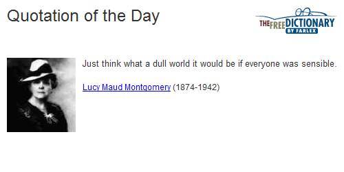 Just think what a dull world it would be if everyone was sensible.Lucy Maud Montgomery (1874-1942) | |