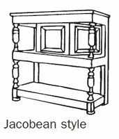 A general term for seventeenth-century English furniture. It initially differed little from Tudor work until continental-style arabesque carving and mannerist decorations grew in popularity. Upholstery and lightness became more general, as did the gateleg table. The Commonwealth (1649–60) reduced decorating to a minimum, typified by the Cromwell chair. From 1660, England rejoined the European baroque mainstream and began the Age of Walnut.