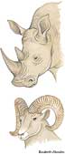 2. A hard protuberance, such as an antler or projection on the head of a giraffe or rhinoceros, that is similar to or suggestive of a horn.